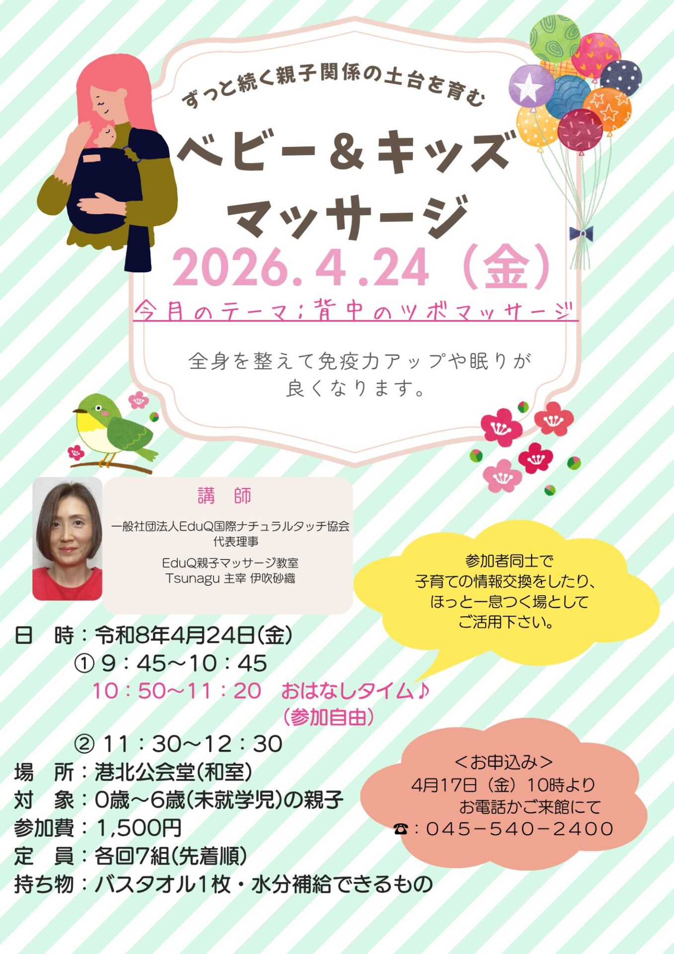 《4/17㈪10時~受付開始》4月24日(金) ベビー&キッズマッサージ