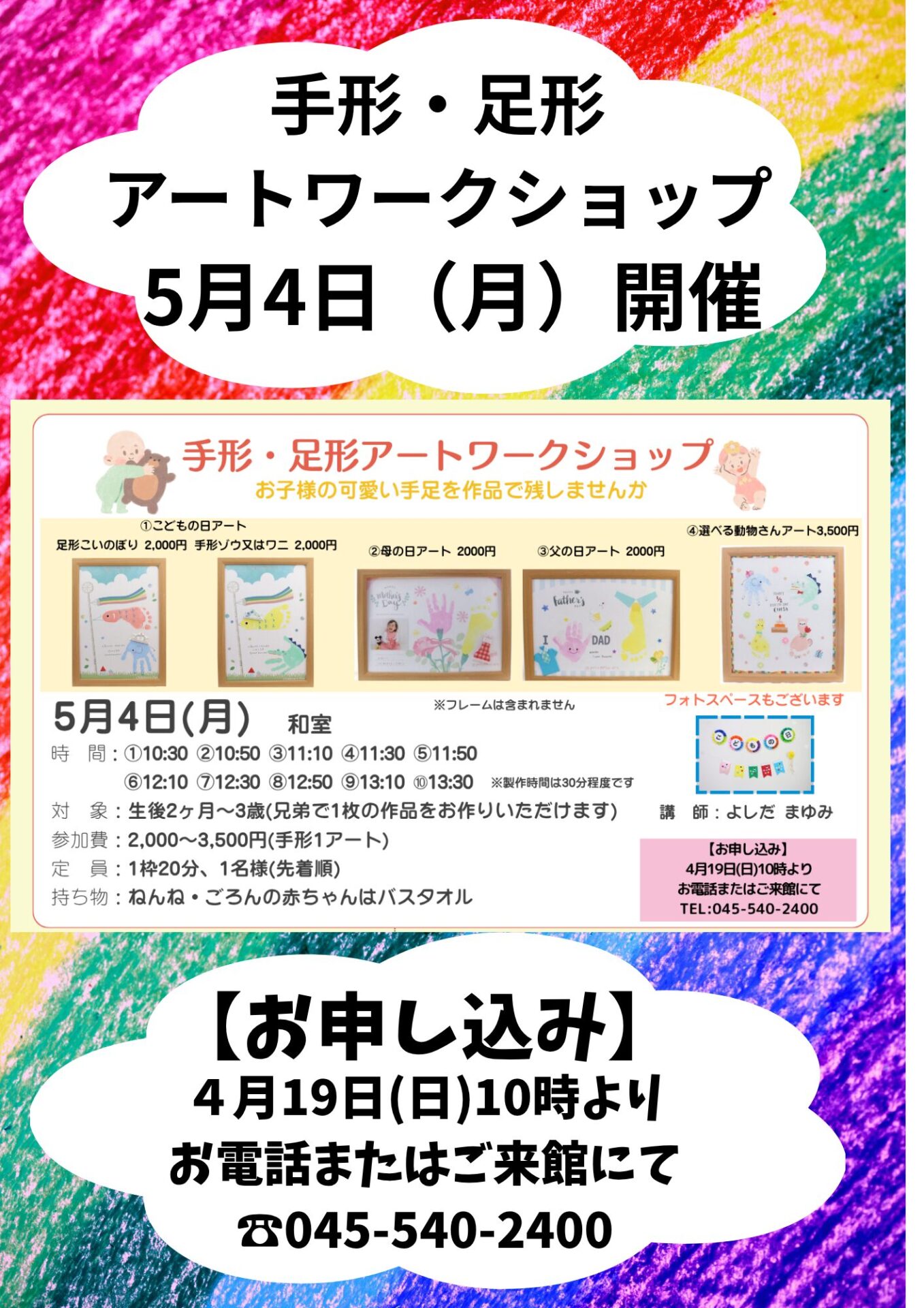 《4/19(日)10時受付開始》5月4日(月)手形・足形ワークショップ