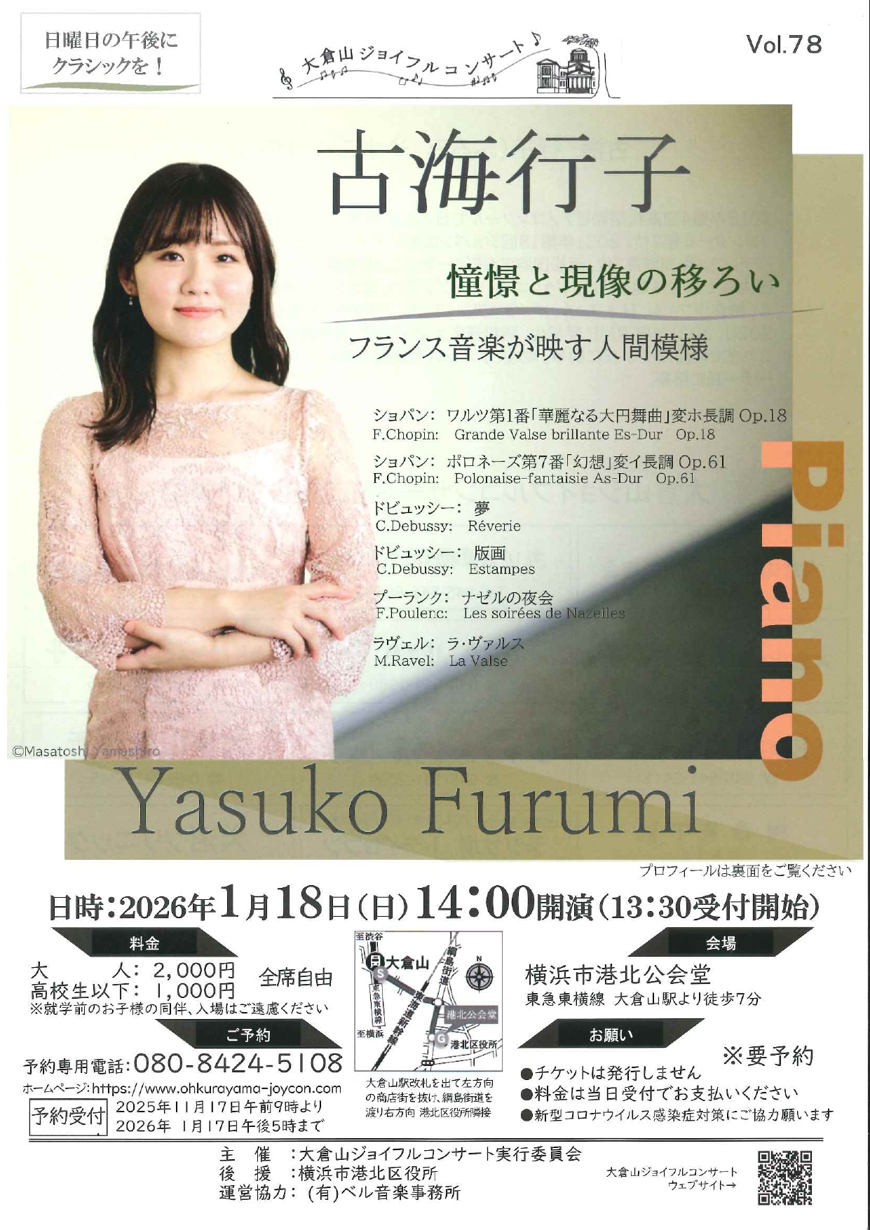 1月18日(日) 大倉山ジョイフルコンサート 古海 行子 憧憬と現像の移ろい~フランス音楽が映す人間模様