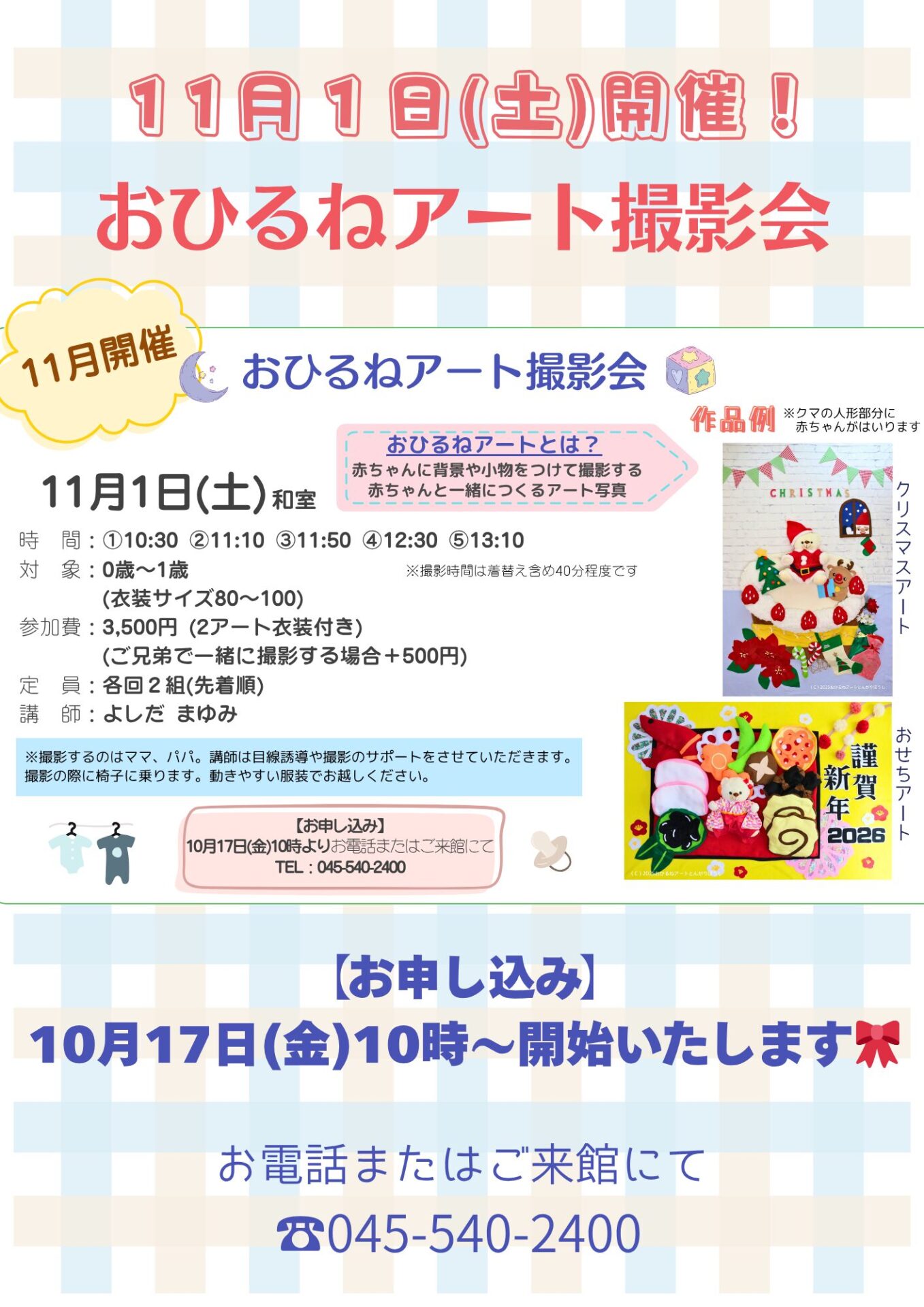 【予約受付中】11月1日(土)おひるねアート撮影会