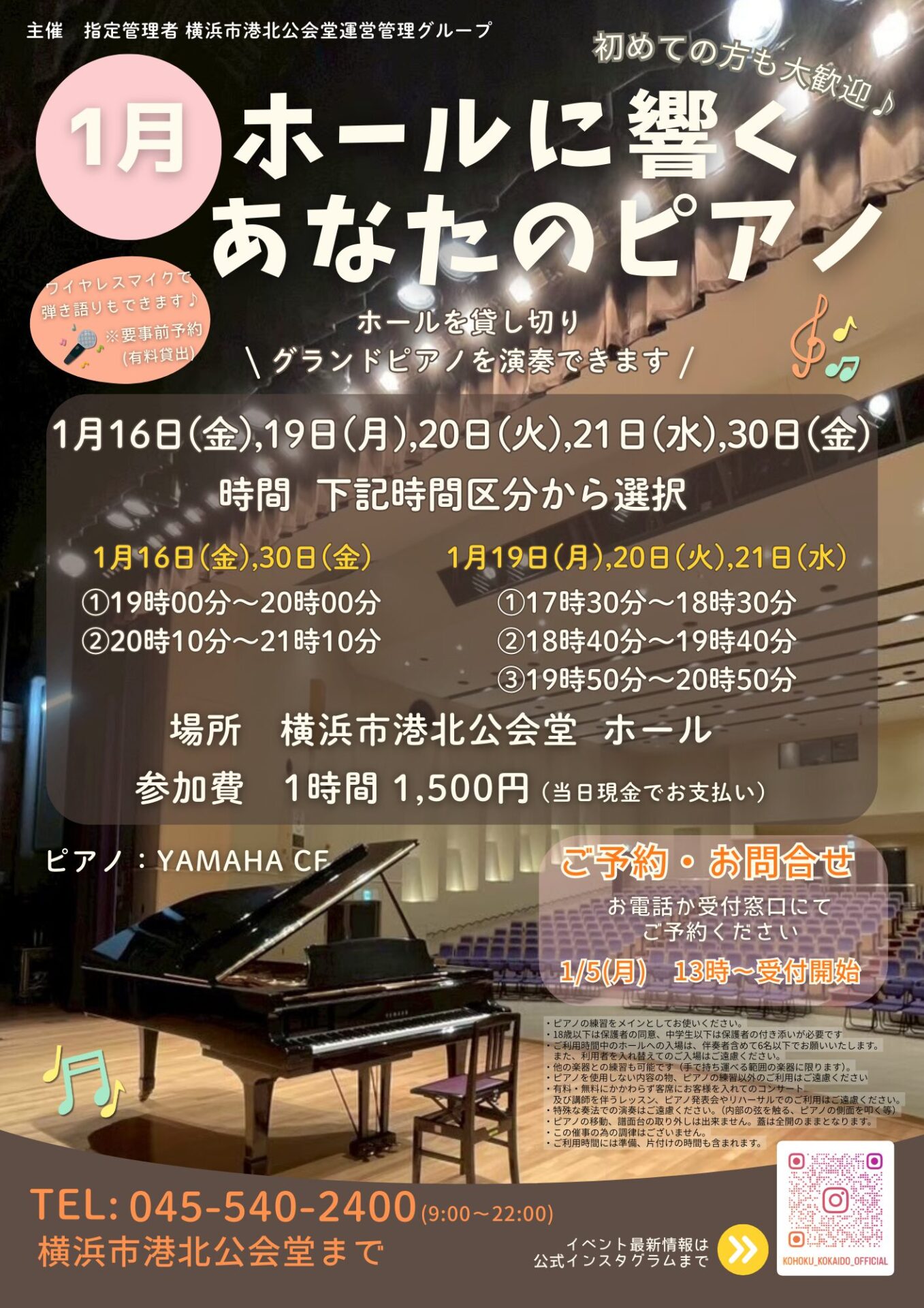 ・止むを得ずキャンセルをされる場合は、必ず事前に港北公会堂までご連絡ください。